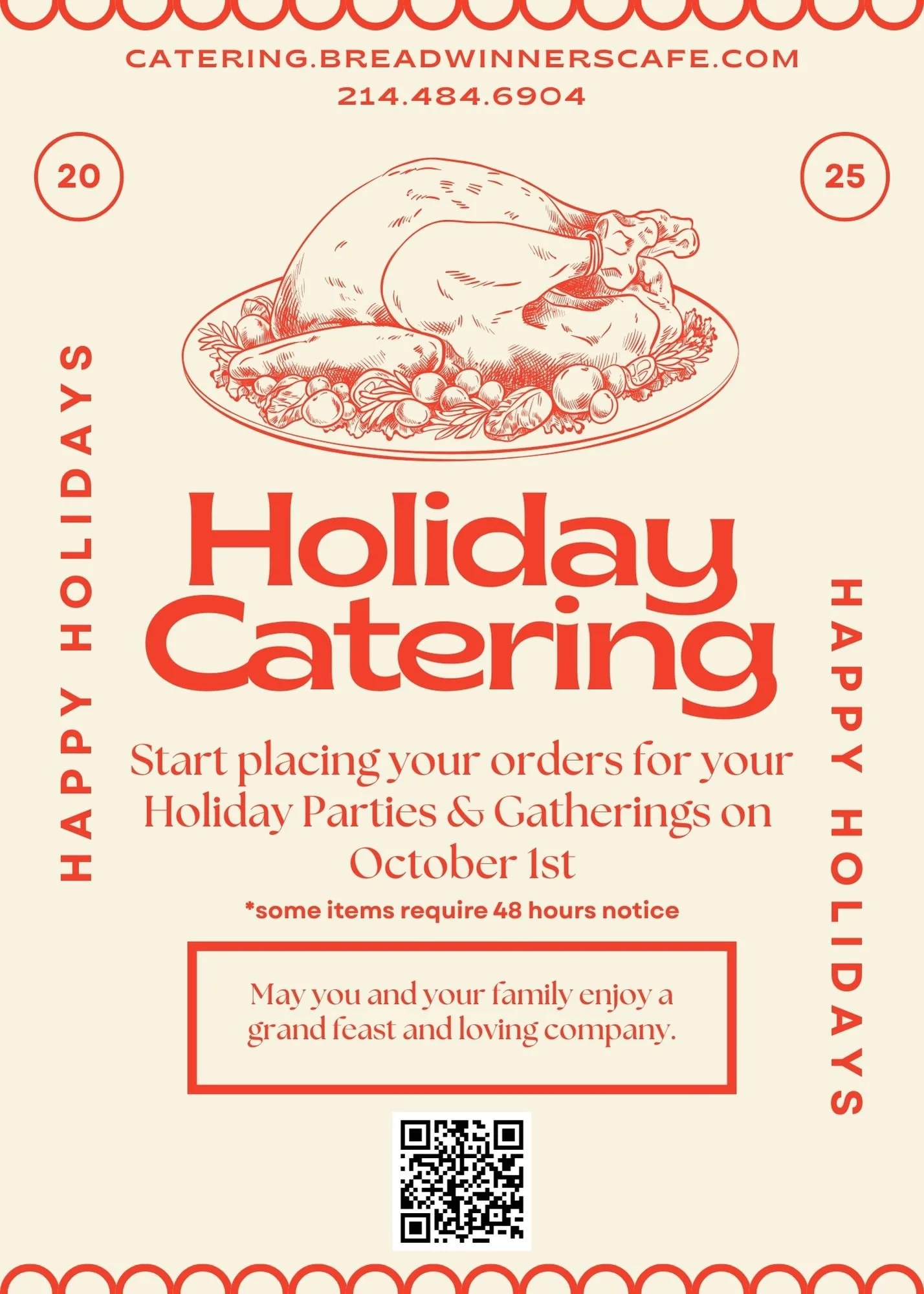 Take the stress out of the season with Bread Winners’ holiday catering. From Thanksgiving turkeys with all the fixings to festive Christmas spreads, our special holiday menu is filled with comforting classics everyone loves. Whether you’re hosting family, friends, or the office, we’ll bring the warmth of the holidays to your table—delicious, hassle-free, and ready to enjoy.
